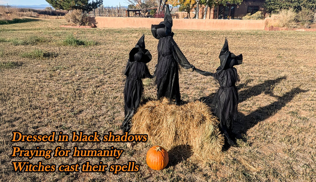 Dressed in black shadows Praying for humanity Witches cast their spells