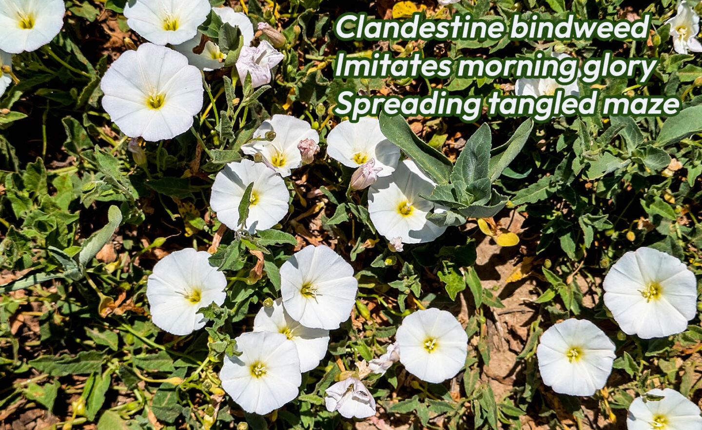Clandestine bindweed  Imitates morning glory  Spreading tangled maze