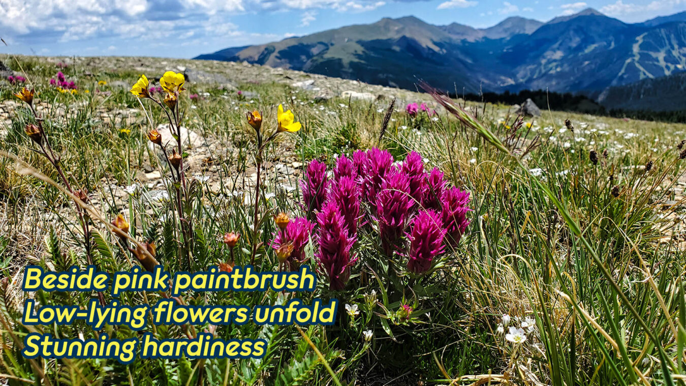 Beside pink paintbrush  Low-lying flowers unfold  Stunning hardiness