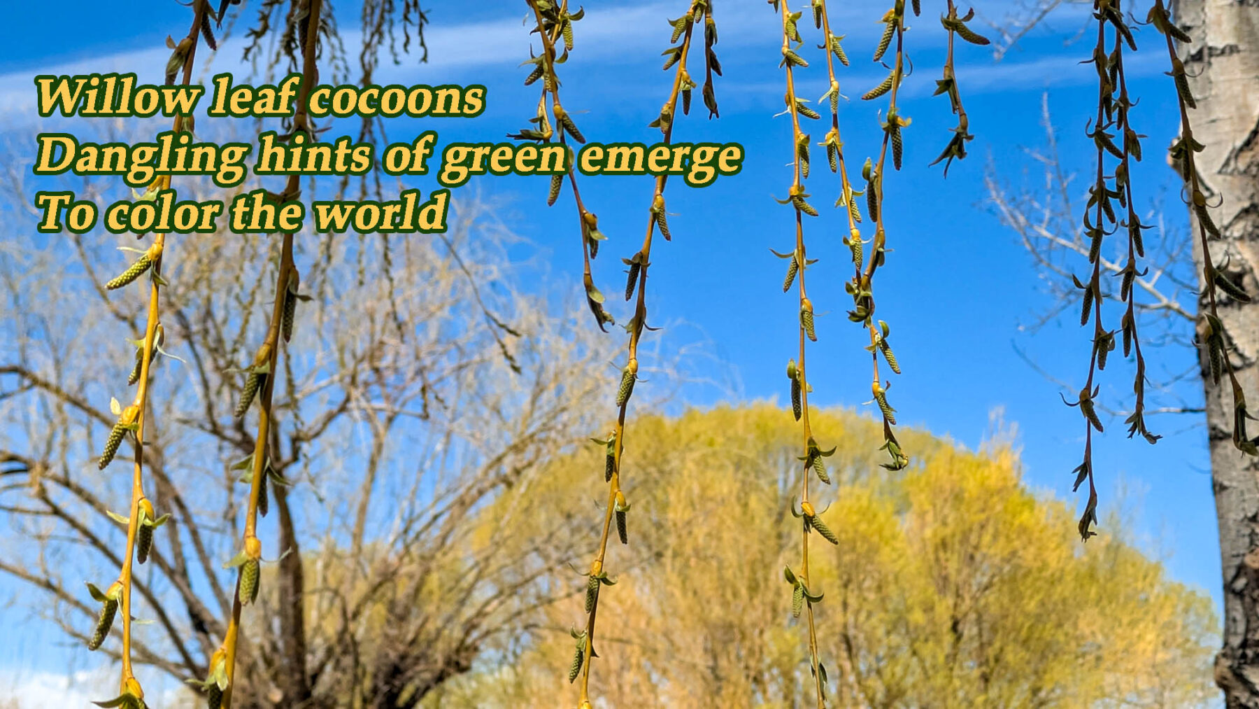 Willow leaf cocoons Dangling hints of green emerge To color the world