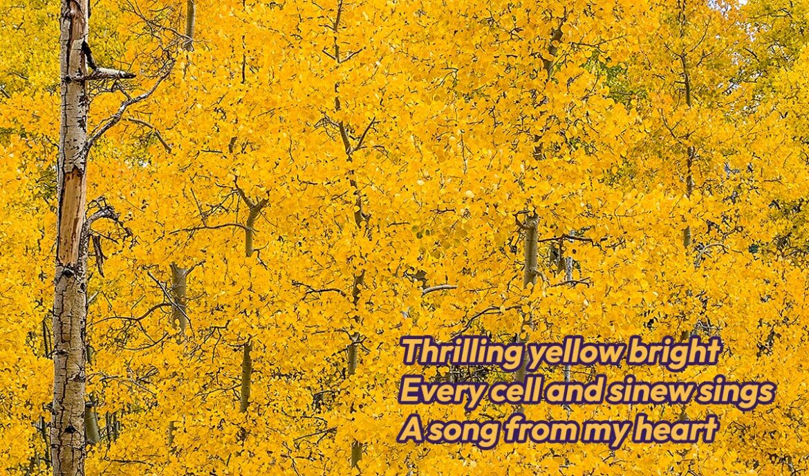 Thrilling yellow bright  Every cell and sinew sings  A song from my heart