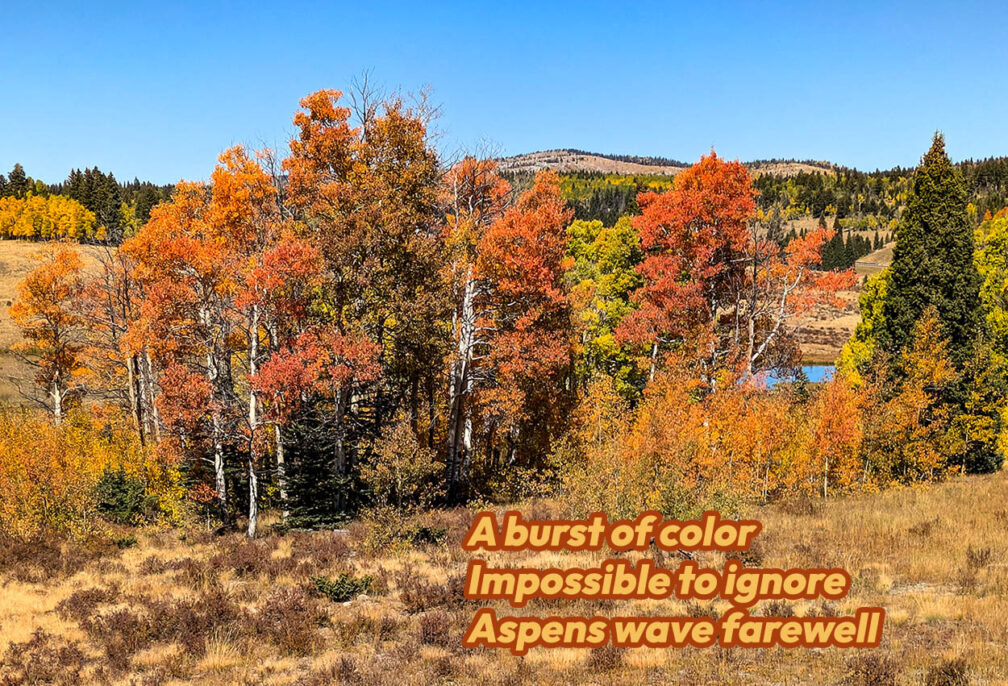A burst of color  Impossible to ignore  Aspens wave farewell