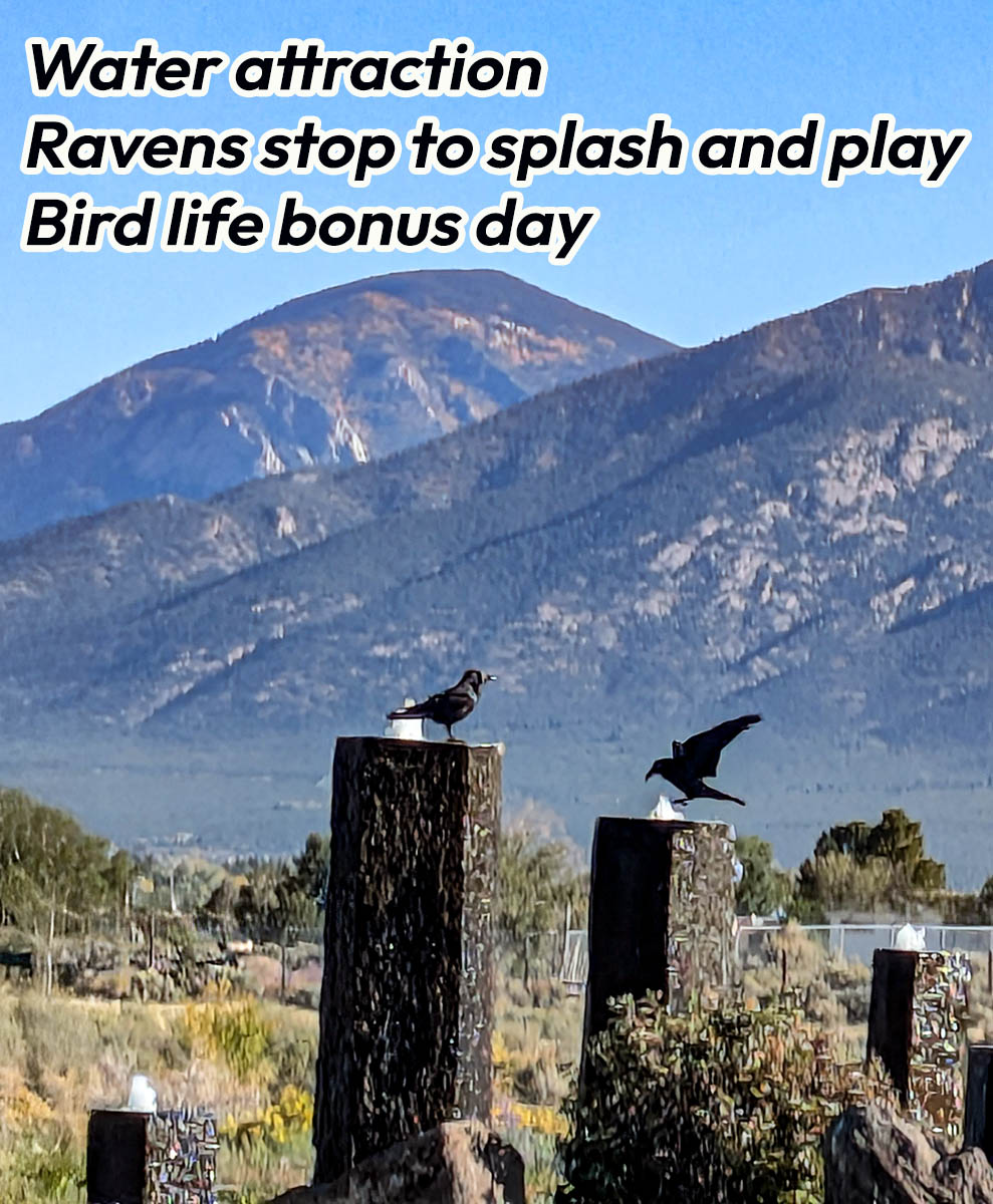 Water attraction  Ravens stop to splash and play  Bird life bonus day