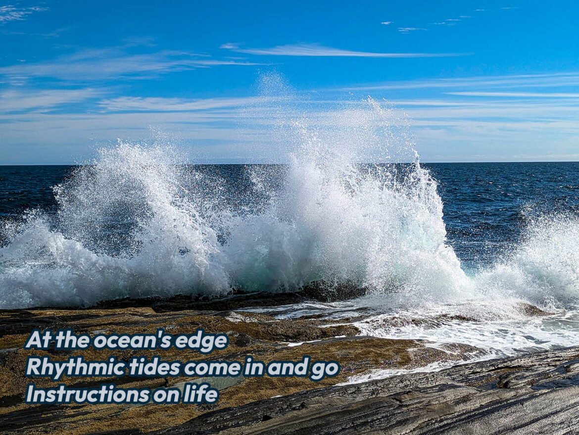 At the ocean’s edge  Rhythmic tides come in and go  Instructions on life