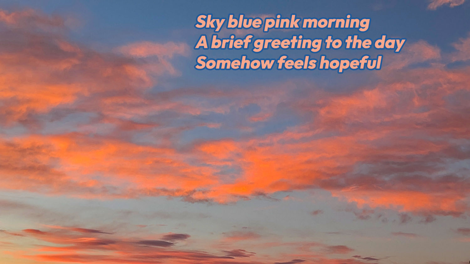 Sky blue pink morning  A brief greeting to the day  Somehow feels hopeful
