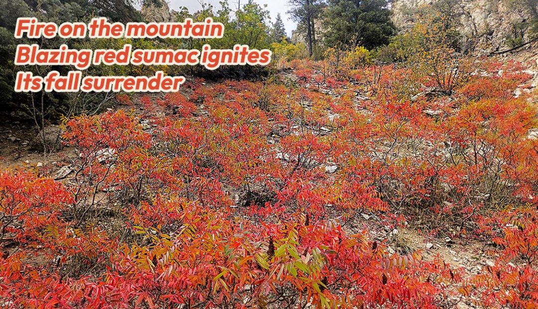 Fire on the mountain Blazing red sumac ignites Its fall surrender