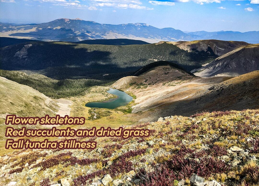 Flower skeletons Red succulents and dried grass Fall tundra stillness