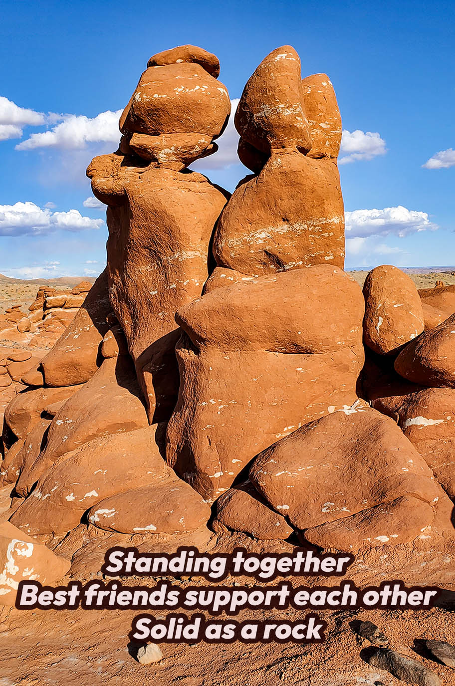 Standing together Best friends support each other Solid as a rock